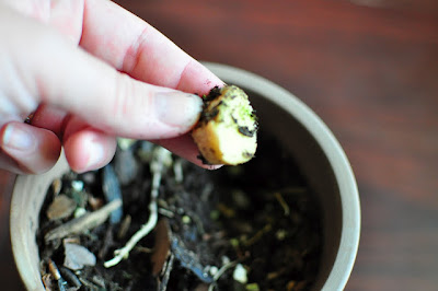 You just need some soil, water, and small pieces of ginger root that have a node on them. You can also keep yourself in green onions without repeat trips to the grocery store by saving the roots once you’ve used the ends and placing them in water where they will grow back. There’s tutorial on how to grow green onions in water over at The Burlap Bag Blog.