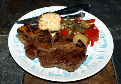 Two 8-10oz. Rib-eyes (We bought natural, locally raised beef from Sandy River Pork of Axton, VA from our City Market)